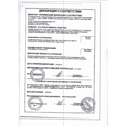 Другие ингредиенты: лактоза, тальк, кукурузный крахмал, прежелатинизированный крахмал, стеарат магния, аэросил.