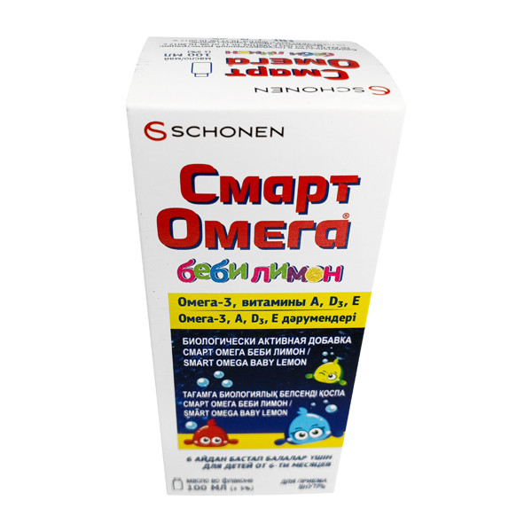 Из продуктов питания получить достаточное количество Омега-3 сложно. Этих жирных кислот много содержится в рыбе, но не все дети ее любят. Поэтому малышам можно давать важные микроэлементы в виде сиропа – Смарт Омега Бэби. Благодаря приятному лимонному вкусу дети с удовольствием его употребляют. Этот препарат рекомендован ребятишкам начиная с 6 месяцев.