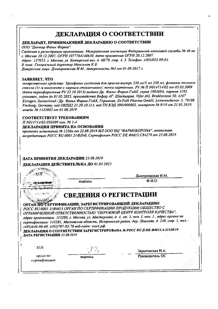 Сочетание Урсофалька с антацидами, содержащими гидроксид алюминия, помимо колестипола или холестирамина, снижает системную абсорбцию УДХК.