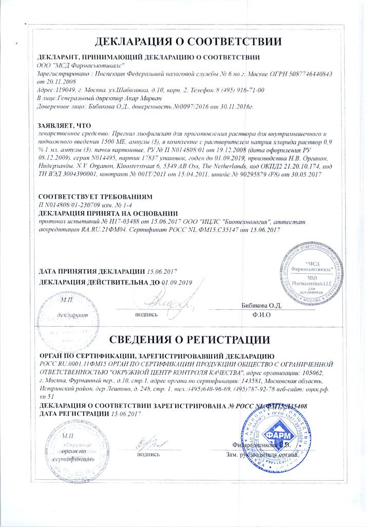 Функциональное вещество - хорионический гонадотропин человека, гормон, также известный как ХГЧ, в концентрации 1500 в одной ампуле или флаконе.