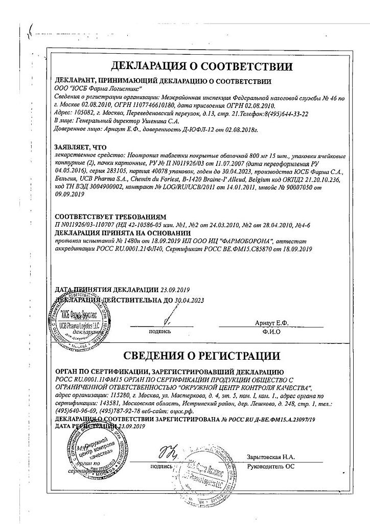 Основной действующий компонент – пирацетам.