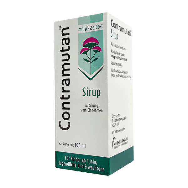 Препарат Контрамутан представляет собой сироп, который содержит в себе действующие вещества: белладонну обыкновенную, эхинацею узколистную, акониит клобучковый, посконник пронзённолистный. Производителем данного препарата является компания M.C.M Klosterfrau Vertr. GmbH.
