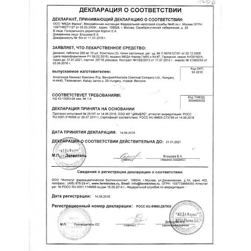 Одновременный прием с ингибиторами МАО усиливает токсические свойства Делагила.
