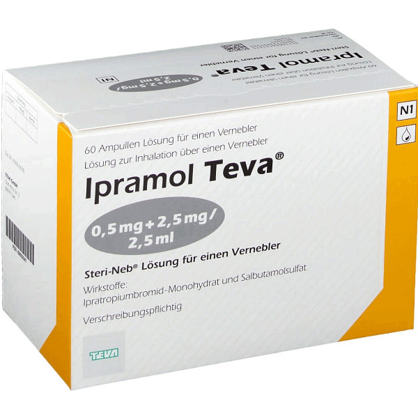 Ипрамол Тева используется для лечения бронхоспазма у пациентов с хронической обструктивной болезнью легких (ХОБЛ), которым требуется регулярное лечение ипратропия бромидом и сальбутамолом.