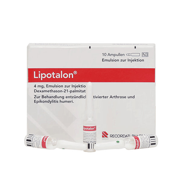 Липоталон — противовоспалительный препарат для инъекций на основе дексаметазона (в форме дексаметазона-21-пальмитата, “депо”-форма). Принадлежит к группе глюкокортикостероидов — гормоноподобных веществ, которые быстро и мощно подавляют воспаление. Препарат применяется, когда нужно оперативно уменьшить боль, отёк и скованность при выраженном воспалительном процессе.