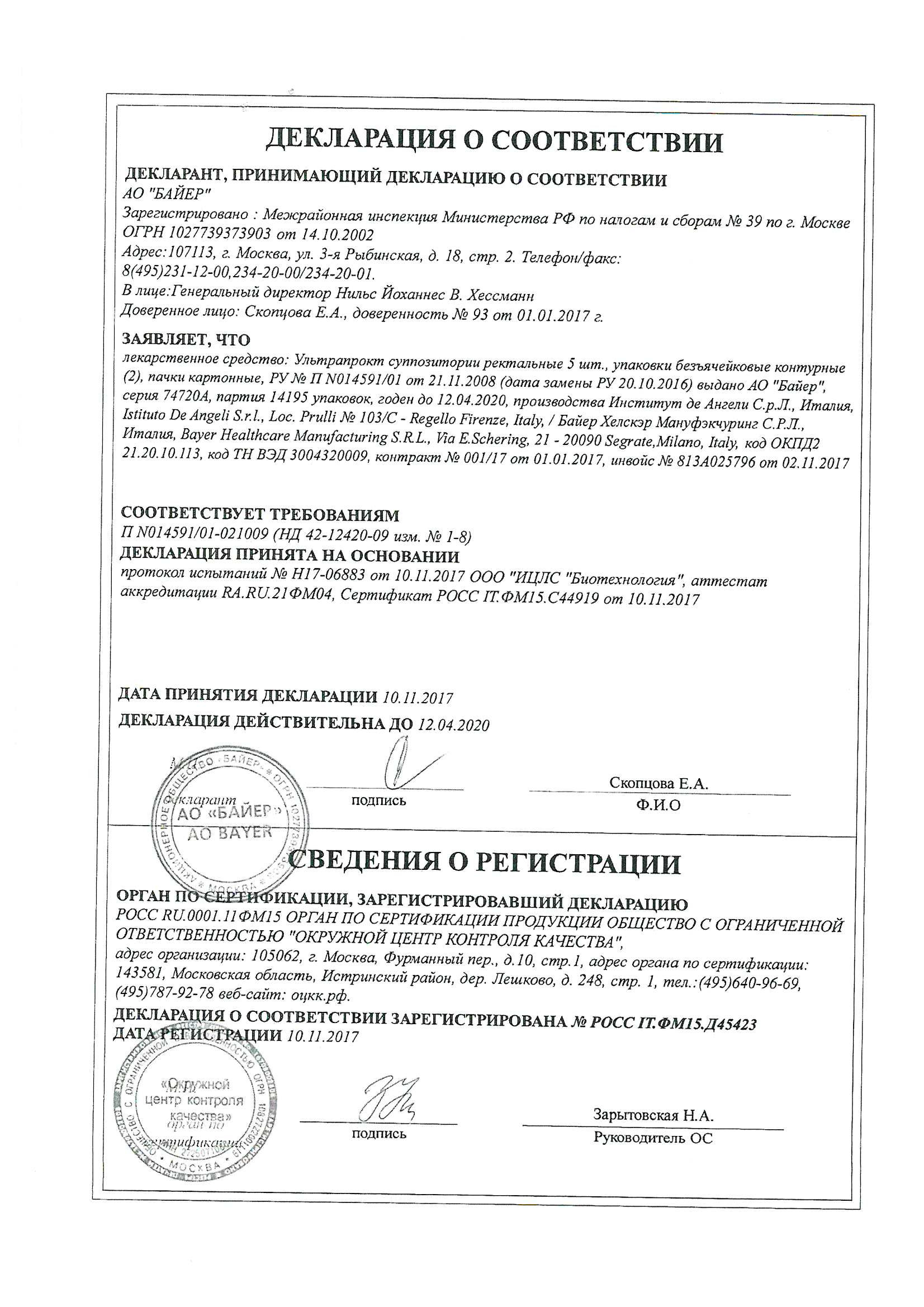 В качестве вспомогательных веществ Ультрапрокт содержит: полусинтетические твердые вещества (Witepsol w 35).