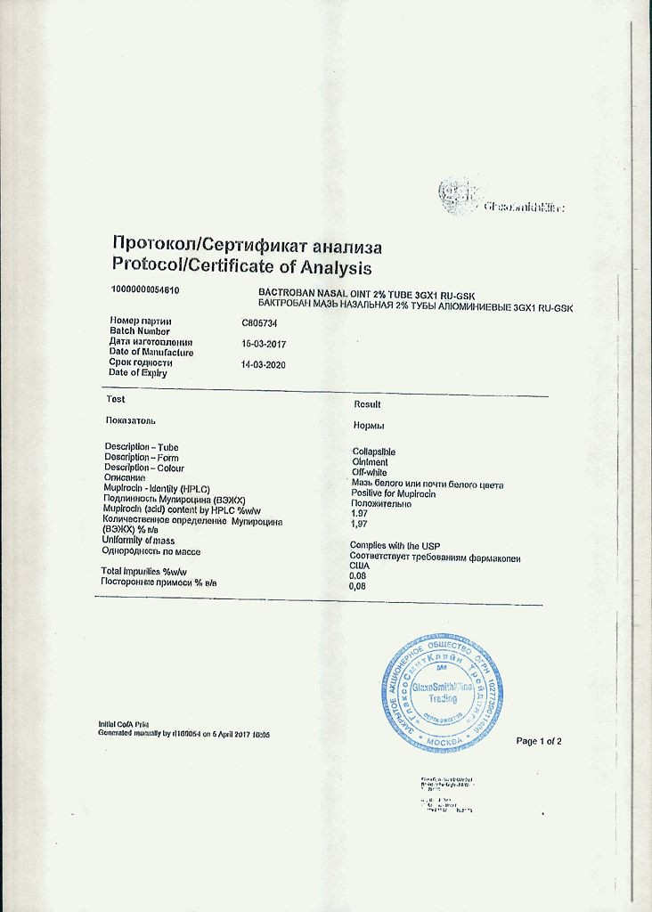 Бактробан (Bactroban) мазь назальная 2% 3г в Москве