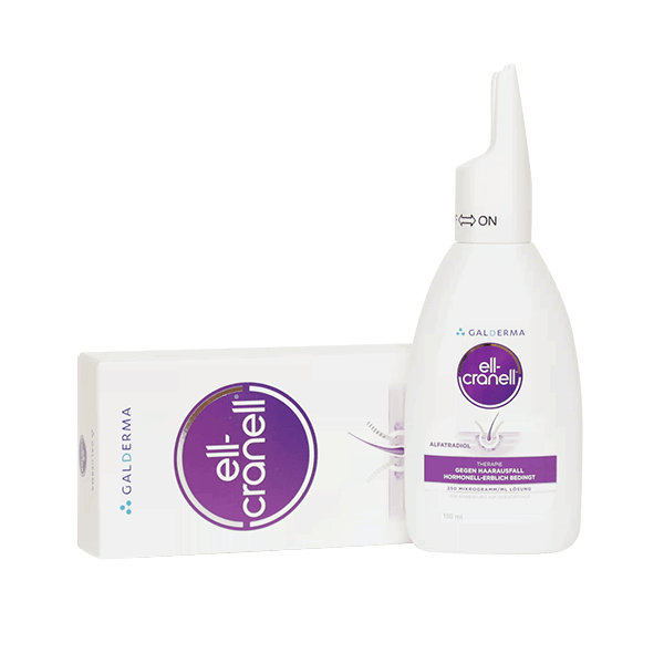 Эль Кранель - лечебное средство для ухода за кожей головы, применяемое при гормональном облысении. Применяется женщинам и мужчинам при заметном истончении волос или очаговой алопеции. Раствор Ell-Cranell - препарат, эффективный при андрогенетической алопеции.