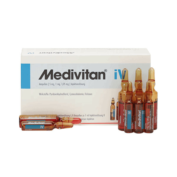 Medivitan β ΠΊΠΎΠΌΠ±ΠΈΠ½ΠΈΡΠΎΠ²Π°Π½Π½ΡΠΉ ΠΈΠ½ΡΠ΅ΠΊΡΠΈΠΎΠ½Π½ΡΠΉ ΠΏΡΠ΅ΠΏΠ°ΡΠ°Ρ Π²ΠΈΡΠ°ΠΌΠΈΠ½ΠΎΠ² Π³ΡΡΠΏΠΏΡ B ΠΈ ΡΠΎΠ»ΠΈΠ΅Π²ΠΎΠΉ ΠΊΠΈΡΠ»ΠΎΡΡ, ΠΏΡΠ΅Π΄Π½Π°Π·Π½Π°ΡΠ΅Π½Π½ΡΠΉ Π΄Π»Ρ ΠΊΠΎΡΡΠ΅ΠΊΡΠΈΠΈ Π΄Π΅ΡΠΈΡΠΈΡΠ½ΡΡ ΡΠΎΡΡΠΎΡΠ½ΠΈΠΉ ΠΈ ΠΏΠΎΠ΄Π΄Π΅ΡΠΆΠΊΠΈ Π½Π΅ΡΠ²Π½ΠΎΠΉ ΡΠΊΠ°Π½ΠΈ ΠΈ ΠΊΡΠΎΠ²Π΅ΡΠ²ΠΎΡΠ΅Π½ΠΈΡ.
