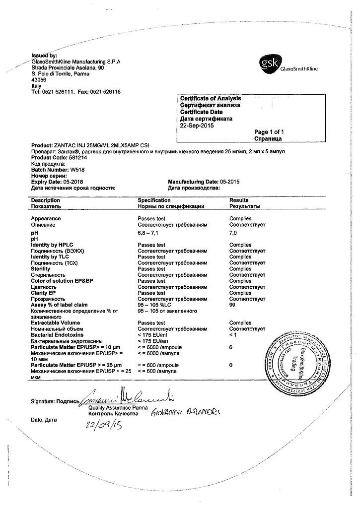 Развился рефлюкс на фоне запущенного гастрита, ну это как доктор сказал, а там не знаю. Прописали Зантак это тот же Ранитидин но в ампулах, чтобы лучше всасывался. Мне стало ощутимо лучше, помогло назначенное лечение и это факт, всё таки препарат европейский, про качество думаю не стоит писать. Заказывал в Артерия-Фарм первый раз, перезвонили только через час но в итоге всё привезли, не обманули. Цены здесь нормальные.